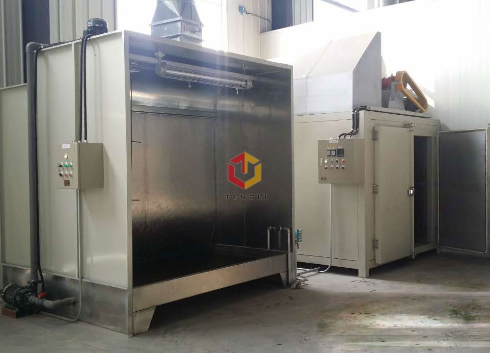 液體噴漆柜設備流水線噴淋式多工位前處理機組是表面處理常用的設備,其原理是利用機械沖刷加速化學反應來完成除油、磷化、水洗等工藝過程。鋼件噴淋式前處理的典型工藝是:預脫脂、脫脂、水洗、水洗、表調、磷化、水洗、水洗、純水洗。前處理還可采用拋丸清理機,適用于結構簡單、銹蝕嚴重、無油或少油的鋼件。且無水質污染。