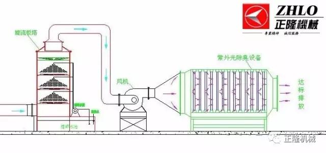 6、UV高效光解氧化法:利用高能UV紫外線光,裂解工業廢氣物質分子及空氣中的氧分子,產生游離氧,即活性氧,其與氧分子結合,產生臭氧。通過高能紫外線及臭氧對工業廢氣進行協同光解氧化作用,使氣體物質降解轉化成低分子化合物、水和二氧化碳,再通過排風管道排出。去除效果可達95%以上,基本不需要維護,且占地面積小,用電也很小,運行維護費用低。能處理氨、硫化氫、甲硫醇、甲硫醚、苯、苯乙烯、二氧化碳、三甲胺、二甲基二硫醚等混合氣體。